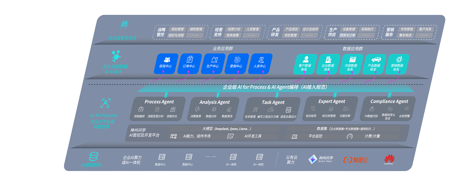 端到端的一站式AI工作空间深度融合了从企业战略规划到日常经营的全流程业务板块,,定向解决车企内部领域多、、部门多、、、链条长、、、场景碎片化等难题,,,,支持车企快速构建以AI为核心的生产力写作体系,,实现任务执行与AI能力的无缝集成与交互
