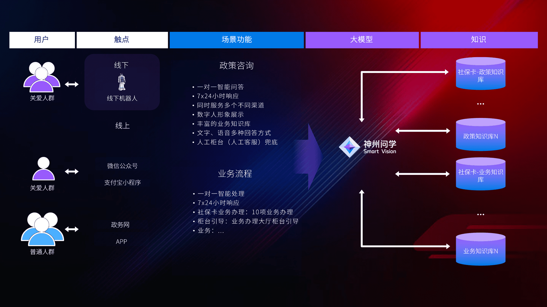 • 线上线下全覆盖:线上提供微信公众号、、、支付宝小程序、、政务网、、、、app多种渠道,,与线下机器人形成完整服务体系。。。。